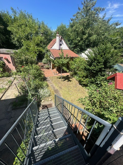 Um die Bequemlichkeit des Grundstückes abzurunden hat der Garten vom rückwärtigen Bereich des Hauses eine Zuwegung. Auf dem Grundstück befindet sich ein massives Gartenhaus ca.19 m2 mit Satteldach und eine Feuerstelle. Ein überdachter Freisitz hier garantiert wunderschöne Sommerabende im grünen. Von der Terrasse des Haupthauses führt eine Treppe (erneuert 2019) in den Garten. Dieser direkte Zugang ist sehr wertvoll da er zu einem liebevoll angelegten Garten führt, ideal für das Familienleben im grünen.