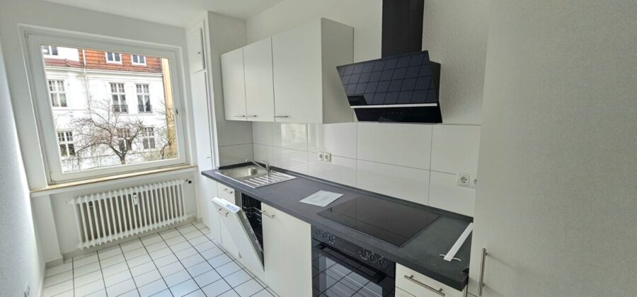 Die Küche mit Fenster ist funktional und wurde mit einer neuen Einbauküche ausgestattet.
